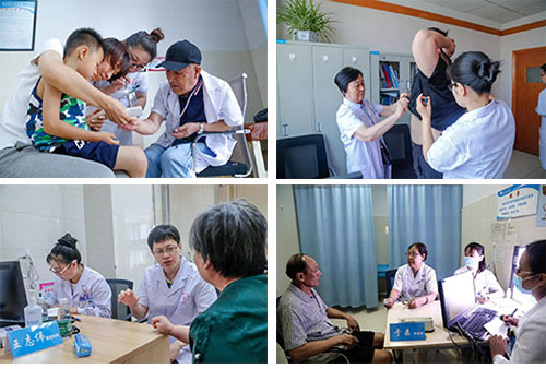 启动仪式结束后,专家们迅速开始工作。微山县人民医院门诊楼大厅内,慕名而来的当地百姓拿着提前预约的就诊号,在分诊服务台前排起长长的队伍。专家们仔细查看病人带来的病历和以往的检查报告,耐心询问病人症状,为他们制定针对性的诊疗方案。北京宣武医院主任医师、呼吸科专家于森,前一天感冒发烧到38.5度,仍坚持参加义诊;解放军301医院心内科张志寿、首都儿科研究所附属儿童医院吴铁吉等专家加班加点也要坚持把当天病号看完。专家们的专业素养和奉献精神,深深打动着广大基层医护人员、志愿者和就诊的患者。在义诊的同时,老专家们还开展了疑难杂症会诊、医护人员培训、教学查房等一系列活动,与当地医生一起研究、讨论和切磋。义诊期间,专家共诊疗1940例,查房指导430人次,科室会诊73人次。