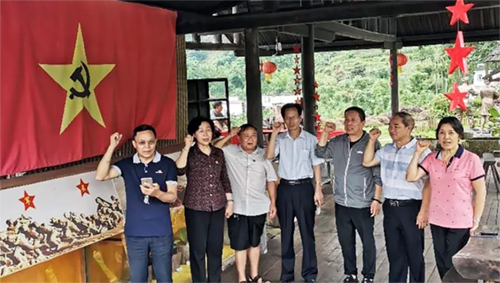 7月1日,值中国共产党99周年之日,四川省老科协功能性党支部全体党员怀着对党无限忠诚和对红军无限崇敬的心情,在兴文县大旗村开展特殊的支部活动。四川省老科协功能型党支部原书记曾清华带头参加支部活动,秘书处全体党员参加活动。兴文县老科协党支书记、县老科协会长彭屏,副书记、副会长李立全受邀请参加活动。