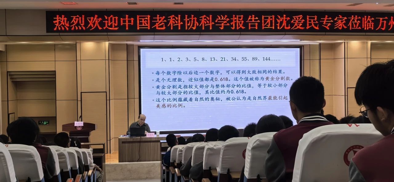 当天,沈爱民先后到万州高级中学、万州第二高级中学举行科普讲座。他从科技知识、科学方法、科学思想、科学精神等公民基本科学素养的四个维度入手,鼓励同学们要崇尚科学,勇攀科技高峰。同时,以浙江大学、哈佛大学等名校校训为切入点,引导同学们要有严格的科学态度,要有求真求实、探索创新的科学精神,要学习科技工作者追求真理的价值标准。