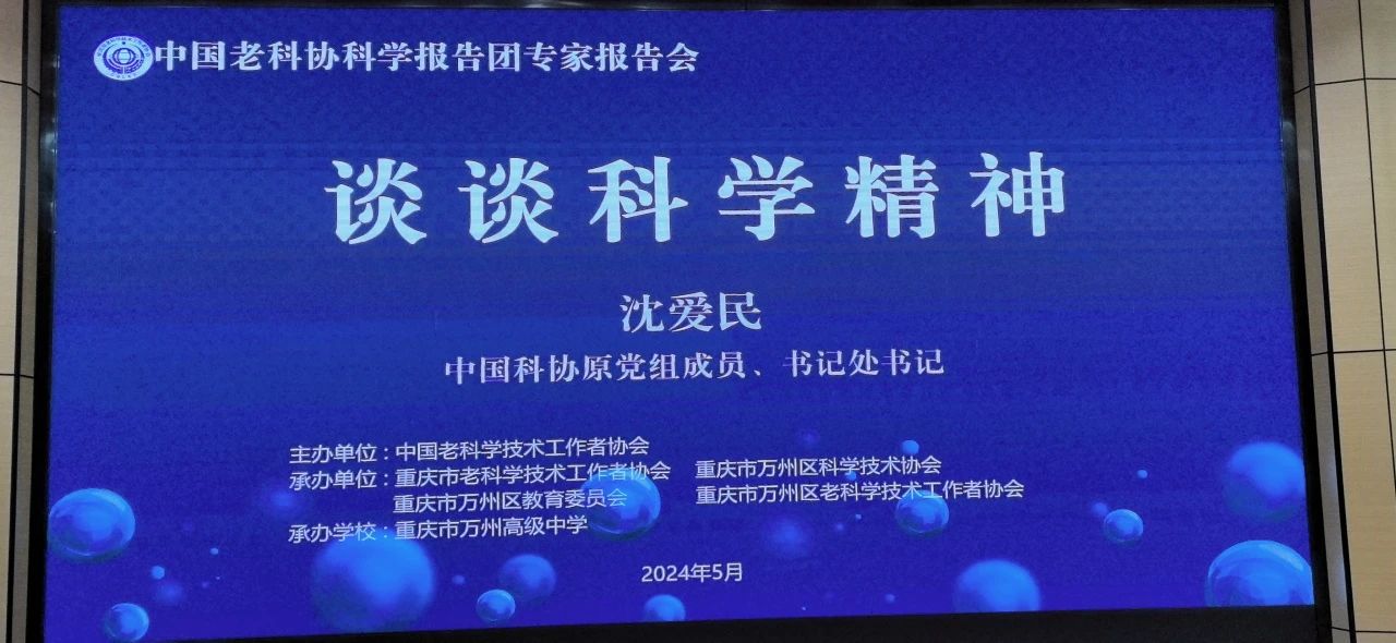 5月13日,重庆市老科协邀请中国老科协科学报告团成员沈爱民到万州区作主题为“谈谈科学精神”的科普讲座。区委副书记彭志辉、重庆市老科协副会长兼秘书长黄坤才出席讲座,区委常委、区政府副区长王建平,区老科协负责同志等参加讲座。