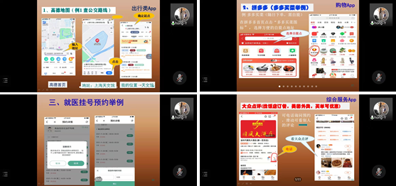 2021年11月24日,上海市老科协委托电子委线上举办第三期智能手机应用系列讲座。上海市老科协科普讲师团讲师、原上海大学副教授岳洪,应邀讲授《智能手机的应用——常用App》。 市老科协副会长李敏、常务副秘书长衣珩,协会其它专业委主任、副主任、秘书长,及协会会员共计76人在线参加。讲座由电子委主任柴忠余主持。