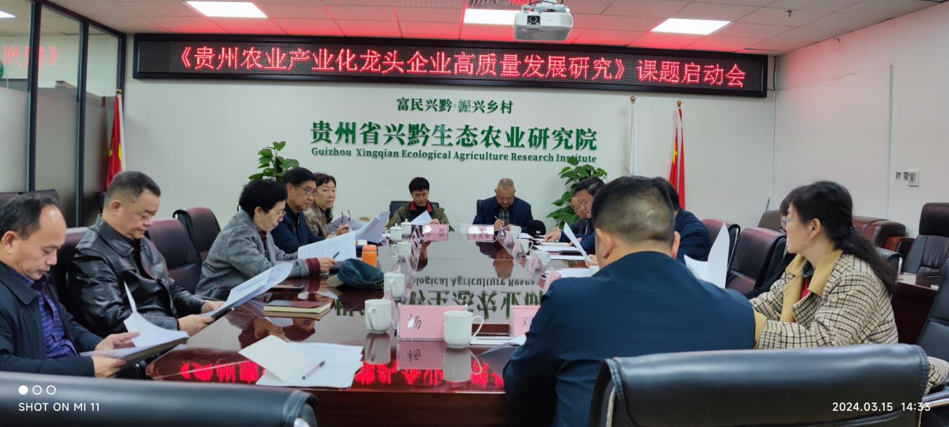 3月15日下午,贵州省老科协2024年《贵州农业产业化龙头企业高质量发展研究》(以下简称《研究》)调研课题启动会在贵阳召开。中国老科协副会长、贵州省老科协会长班程农,十三届省人大农业农村委员会副主任沈芹,省老科协常务副会长兼秘书长杨献忠、副会长方荣基、王芝贵,省农业产业化龙头企业协会会长姜流,省兴黔生态农业研究院院长杨松等20余人出席会议。