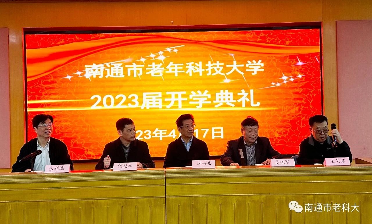 4月17日,南通市老年科技大学2023届专业班举行开学典礼并正式开讲第一课。市老科协会长顾裕岳,市科协副主席何艳军,市老科协常务副会长兼市老科大校长姜晓军,市老科大副校长王笑君,市第一人民医院主任医师、教授张利远出席典礼。