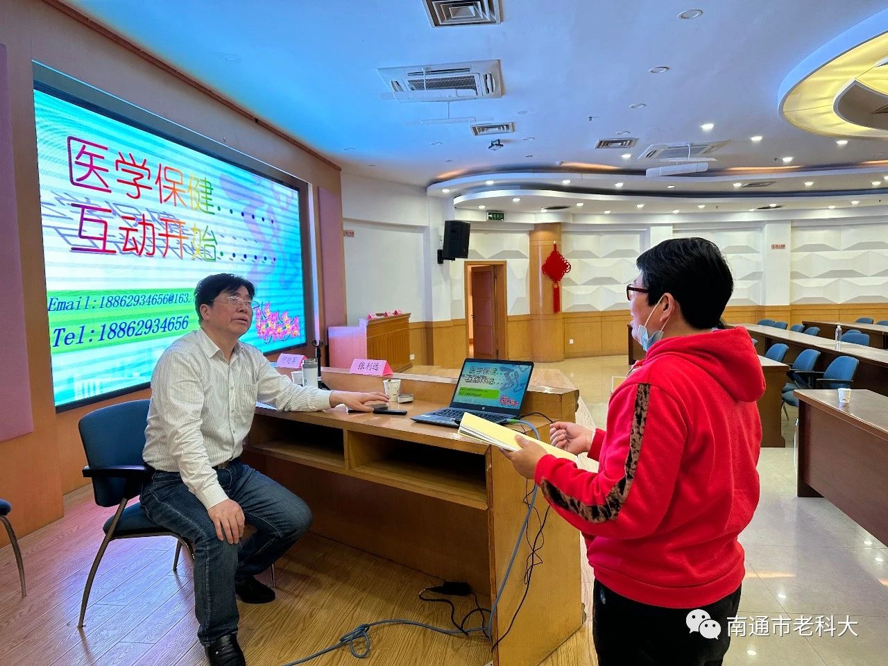 张利远教授汇报了2022年度健康班的整个教学情况。因疫情原因,断断续续,历时 8 个月,完成了 63 课时。无论线下,还是线上,教员讲课十分认真,每次讲课后,互动提问,个性化健康指导,有的课后到医院诊疗,受到专家热情接待,学员收获满满。