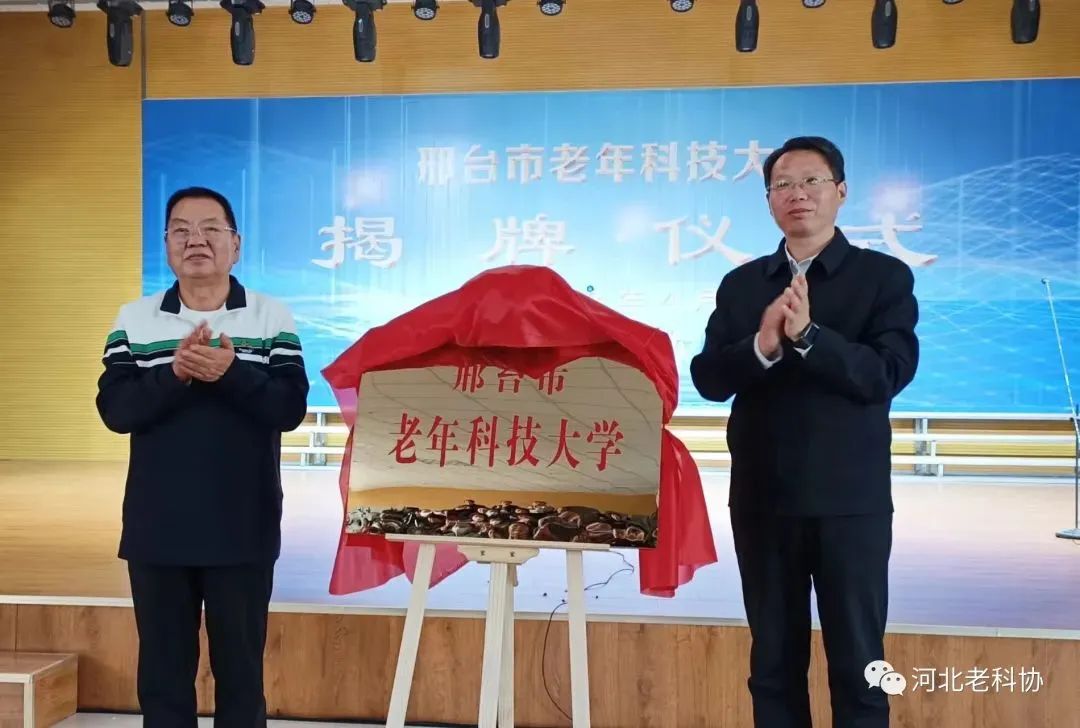 中国老科协副会长、河北省老科协会长臧胜业,邢台市委常委、秘书长贾云霄出席仪式并为老年科技大学揭牌。