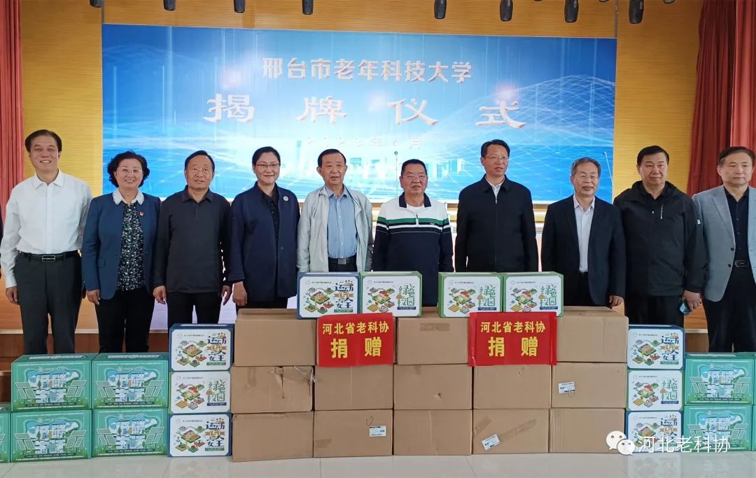 揭牌仪式上,河北省老科协向邢台市老年科技大学捐赠了30套“科技包”。王俊国主持了揭牌仪式。
