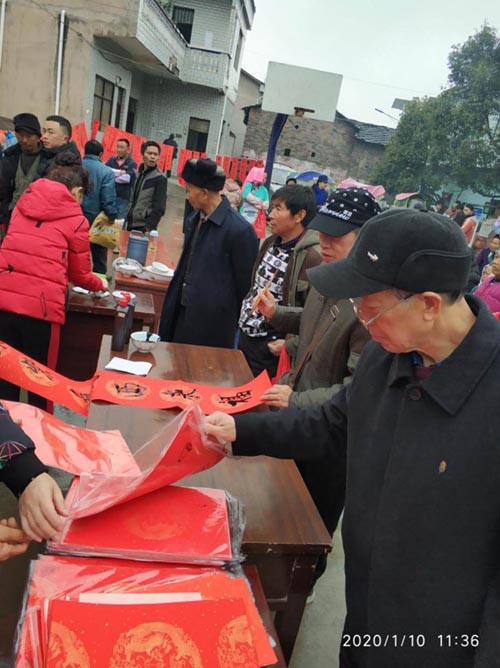 10余位书法家都是已退休的老科技工作者,在文化广场为村支两委、村民书写喜庆和祝福春联300余幅。书法家们还现场讲解对联寓意,村民们兴高采烈品春联、看书法。