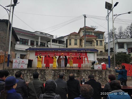2020年1月9-10日,贵州省老科协、贵州省书画研究会和安顺市老科协、安顺市计生协老年科技服务团冒着严寒绵绵细雨赴安顺市刘官乡大黑村联合开展2020年不忘初心牢记使命迎新春“五送”科技文化下乡活动。省老科协副会长杨献忠、方荣基,安顺市老科协常务副会长、安顺市计生协老年科技服务团团长张惠芳等一行40人,带着老科技工作者心系贫困地区村民的心愿,把党和政府对贫困山区村民的关心和关怀送到基层,送到当地农户中。