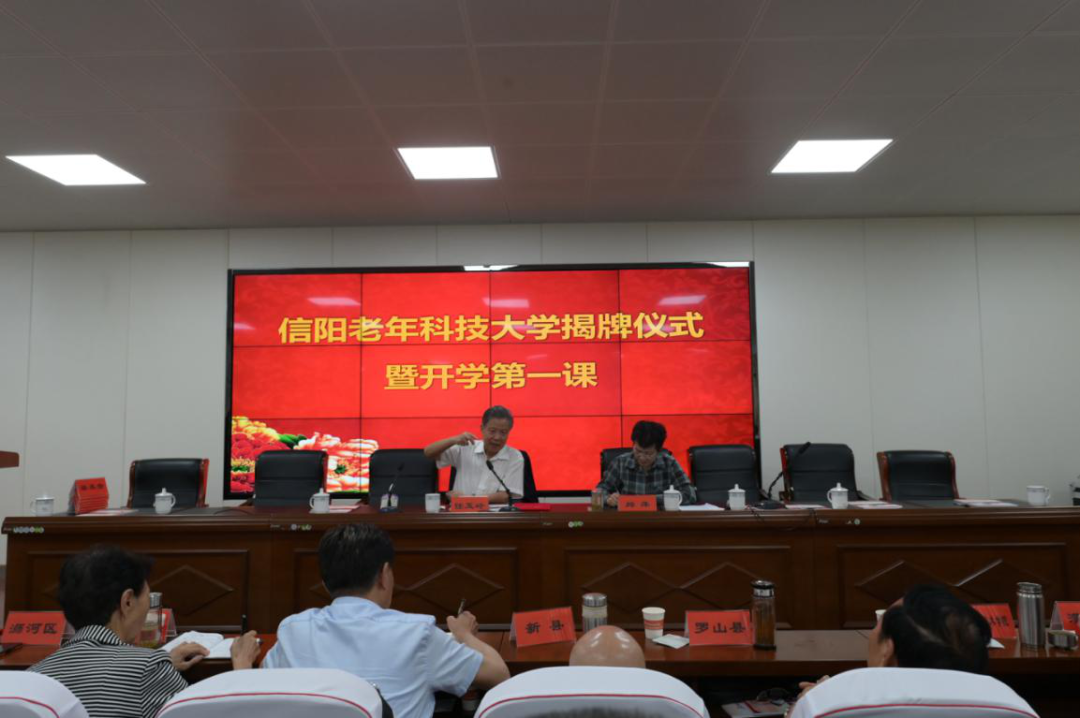 河南省首家省辖市老年科技大学在信阳揭牌并举行开班第一课