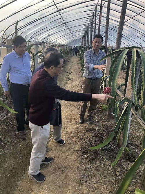 下午到河西村火龙果种植专业户种植大棚查看火龙果的长势情况,专家通过与农户交流了解种植情况。针对火龙果安全越冬的问题,专家出了很好的建议:抽取地下水,用地热资源提高大棚温度,帮助火龙果安全越冬,既环保又经济。