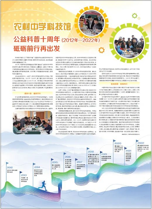 在社会各界的关心、支持下,农村中学科技馆项目从无到有,不断拓宽科普服务阵地。2012年—2022年,累计建设农村中学科技馆1124座,直接服务全国公众1265万人次。项目通过引导优质科学教育资源向农村地区布局,带动农村中学教育理念革新和教学方式转变,起到提升基层青少年科学素质、促进科普资源均衡化、促进农村教育现代化的良好效果,帮助乡村青少年拓展视野,开启更精彩的人生。