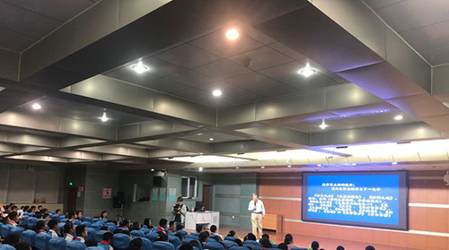 他为阜康市1500余名师生作的题为《祖国在我心中—我在联合国当首席记者》专题报告中,结合自己从事新闻工作40多年的经历,用朴实生动的语言、详实的数据、生动形象的历史案例,阐述了我们伟大祖国从站起来、富起来到强起来的伟大历程,联合国的历史和当前国际风云变幻的局势,中国推进的“一带一路”和“构建人类命运共同体”的倡议为全球和平发展、合作共赢作出的伟大贡献,向青年学生们阐述了正确的人生观、价值观、世界观,启发同学们通过国际视野全方位读懂中国,抚胸定初心,许愿报国志,更加坚定了学生们刻苦学习、报效祖国的决心和自信。
