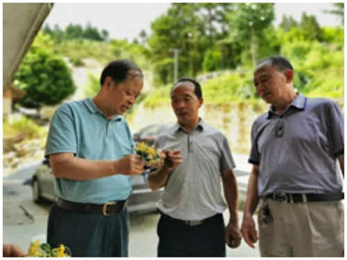 虎形山瑶族乡老科协副会长、合作社负责人黄守华对金银花种植情况进行了介绍。他提到,金银花是隆回县具有特色优势的规模化产业,产量占全国六成。近年来,金银花种植中因长期施用农药、化肥、除草剂,不仅使产品农药残留超标影响品质提升,而且对土壤产生结构性破坏。合作社针对这种现象,潜心研究扦插苗科学栽培技术,施行生物防治为主的病虫害防治方案和以有机肥为主的用肥方案,按照《中药材生产质量管理规范》实施标准化种植,创造出良好的社会效益和经济效益。