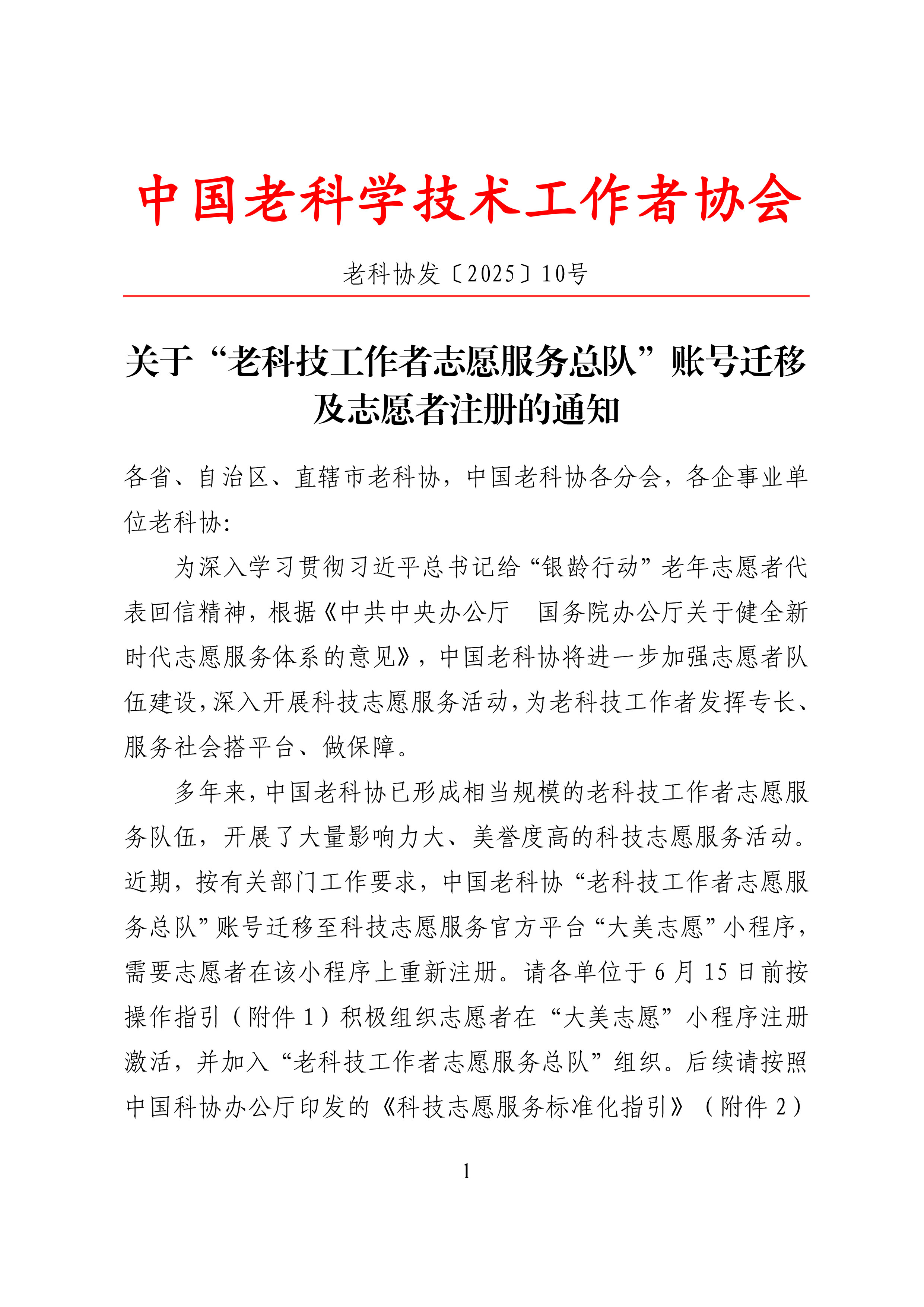 关于“老科技工作者志愿服务总队”账号迁移及志愿者注册的通知